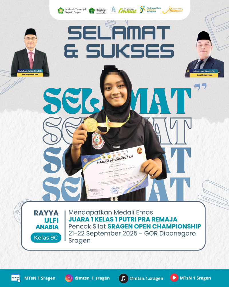 Prestasi ini semakin menegaskan komitmen MTs Negeri 1 Sragen untuk mendukung potensi siswa, baik di bidang akademik maupun non-akademik. Semoga capaian ini menjadi motivasi bagi seluruh siswa untuk terus berprestasi dan mengharumkan nama madrasah.
