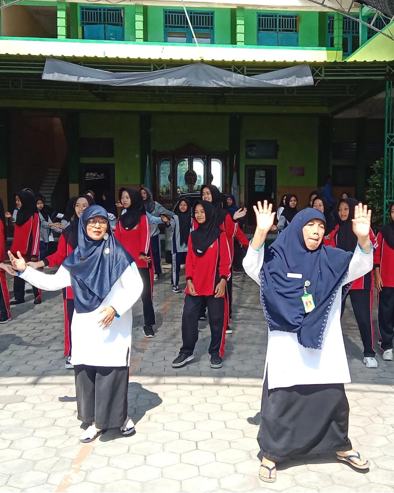 siswa MTs Negeri 1 Sragen mengikuti senam sehat ceria, makan bersama, dan