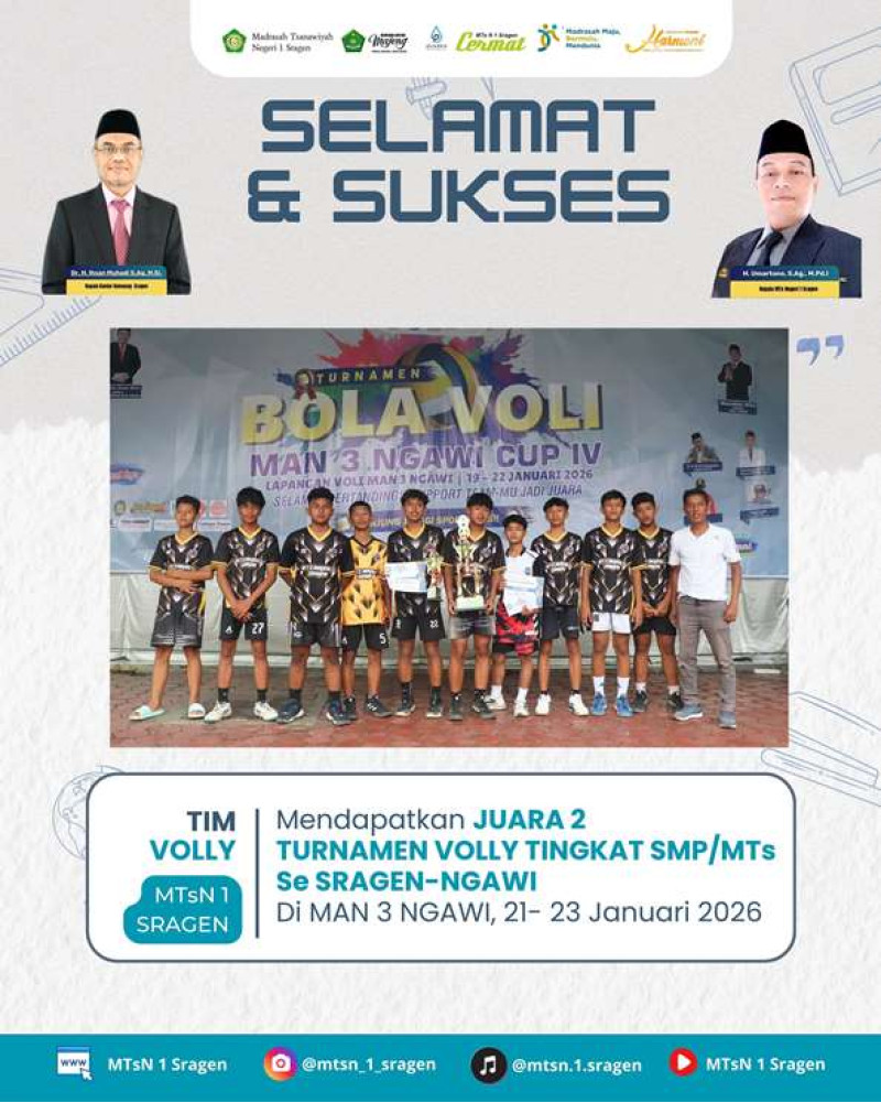 Selamat kepada Tim Voli MTs Negeri 1 Sragen atas prestasi